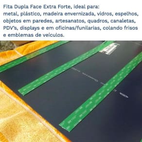 Fita ideal para a fixação de vários tipos de materiais e superfícies que incluem a maioria dos metais, madeira envernizada ou tratada com primer, vidros lisos, objetos em parede, artesanatos, plásticos lisos e superfícies pintadas. Fixação de quadros, placas de identificação, canaletas, PDV's, expositores, displays e metal. Essa fita também é muito usada no mercado automotivo para colocação de frisos e emblemas de todas as marcas. Aplicação simples, rápida e sem sujeira.