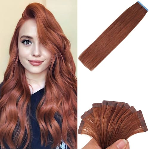 Extensões de cabelo humano Auburn Tape In Hair 35,5 cm, sem costura, reutilizável, fita Remy em extensões de cabelo humano para meninas