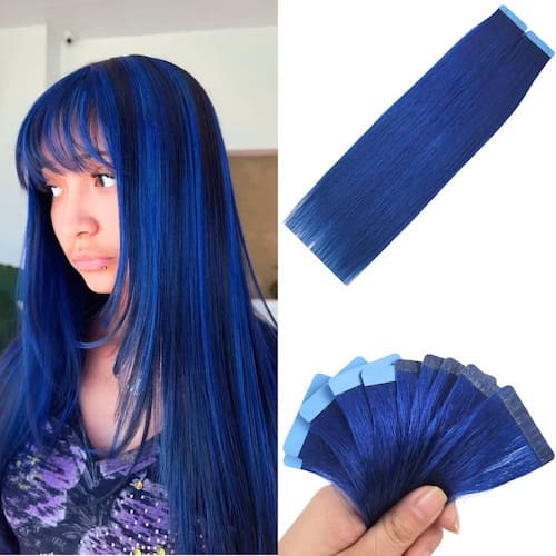 Extensões de cabelo humano com fita azul para mulheres 35,5 cm fita colorida invisível em extensões de cabelo humano destacadas - Fita reutilizável e invisível: Estas extensões de cabelo humano vêm com fita adesiva dupla face, nunca escorregam ou se perdem facilmente. Pode ser reaproveitado por mais de 3 meses. Evite produtos oleosos e altas temperaturas perto da fita adesiva - Material premium de versatilidade: extensões de cabelo humano 100% Remy, macio e sem emaranhados, pode ser tingido, enrolado, alisado e cortado dos seus sonhos. Nunca perca nutrição, nunca perca o brilho - Especificação do cabelo: 30,5 cm-61 cm, 30G, 20 peças/pacote. Nossas extensões de cabelo azuis são leves e confortáveis de usar, adequadas para cabelos finos ou finos. 1 pacote para destaque, 2-3 pacotes para volume e 4-5 pacotes para uma cabeça inteira - Economia de tempo: Estas extensões de cabelo leves com fita são fáceis de instalar sem ferramentas especiais por você mesmo, alguns minutos para obter um novo estilo, sem necessidade de instalação . 2025, é hora de liberar seu tempo de passos excessivos de cabelo! - Homem pós-venda: Czrleaty apoia as mulheres a buscarem suas próprias. Temos uma equipe pós-venda, se você tiver alguma dúvida sobre nossas extensões de cabelo humano com fita adesiva, resolveremos a tempo
