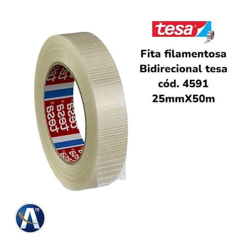 Fita Filamentosa Bidirecional 25mmX50m Tesa. Fita filamentosa cruzada para usos gerais. A tesa 4591 é uma fita filamentosa bidirecional para uso geral baseada em filamentos de vidro laminados em uma película de poliéster. Combina uma boa resistência à tração longitudinal com um baixo alongamento. O sistema adesivo de borracha sintética garante uma fixação segura a vários substratos, mesmo em superfícies não polares, como PE e PP. A fita também exibe excelente aderência a uma variedade de superfícies de papelões corrugados e sólidos. A tesa 4591 é resistente à rasgos. A tesa 4591 apresenta uma aderência muito elevada e um tempo de permanência curto antes de atingir o poder adesivo final. Aplicação: Agrupamento e paletização Selagem de papelões pesados e resistentes Segurança de transporte Fixação End-tabbing Composição do produto: Material do suporte: fibra de vidro / PET Tipo de adesivo: borracha sintética Espessura total: 115 m Cor: transparente Propriedades / Valores de Desempenho: Alongamento até a ruptura:4 % Força de tensionamento: 250 N/cm Adesão aos valores: Aço 9.5 N/cm Tempo de - 3 meses de conforme art. 26 do Código de Defesa do Consumidor CDC . Aguardamos seu pedido Obrigada pela preferência Marca: Não Informado