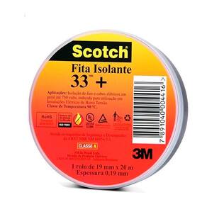 A fita 33+ é destinada ao , atendendo a todos os requisitos exigidos pelas normas nbr 5057 e 5037. É a primeira fita isolante do mercado brasileiro que suporta até 105º c, suportando até os fios e cabos mais robustos. Possui alto poder de adesão e alta conformabilidade, com ótimo custo benefício nas instalações. Oferece também proteção, segurança e alta durabilidade, pois não desgruda e não resseca ao longo dos anos. A fita 33+ tem garantia na isolação, pois a fita acompanha o movimento de dilatação e contração dos fios e cabos. É antichama e fabricada no brasil. Possui excelente memória elástica, garantindo perfeita isolação nas diversas condições de intempéries. Oferece bons resultados nas mais variadas superfícies, sendo especialmente indicada para os mais diversos tipos de isolamentos elétricos. A fita é um produto à base de pvc de cor preta, e possui embalagem que protege a fita de possíveis deformações e contaminações.