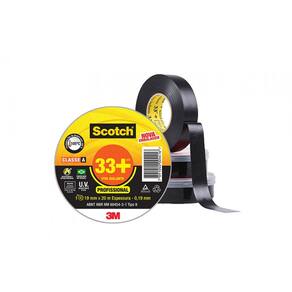 A fita 33+ é destinada ao , atendendo a todos os requisitos exigidos pelas normas nbr 5057 e 5037. É a primeira fita isolante do mercado brasileiro que suporta até 105º c, suportando até os fios e cabos mais robustos. Possui alto poder de adesão e alta conformabilidade, com ótimo custo benefício nas instalações. Oferece também proteção, segurança e alta durabilidade, pois não desgruda e não resseca ao longo dos anos. A fita 33+ tem na isolação, pois a fita acompanha o movimento de dilatação e contração dos fios e cabos. É antichama e fabricada no Brasil. Possui excelente memória elástica, garantindo perfeita isolação nas diversas condições de intempéries. Oferece bons resultados nas mais variadas superfícies, sendo especialmente indicada para os mais diversos tipos de isolamentos elétricos. A fita é um produto à base de pvc de cor preta, e possui embalagem que protege a fita de possíveis deformações e contaminações.