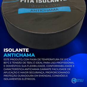 - - Fita Isolante Antichama 0,13mm x 19mm x 20m cor preta Hiatsu
