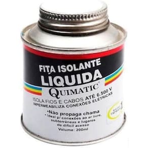 Não propaga a chama em estado seco. Além de isolar também impermeabiliza, protegendo de umidade, água e corrosão, inclusive debaixo dágua ou sob intemperismo. Facilmente aplicado em componentes elétricos com formatos irregulares. Vantagens: Aplicável a pincel ou por imersão, numa espessura de 1 mm isola até 6500 volts. Adere a metais, borracha, plásticos, vidro, e outros materiais. Para todas as ligações elétricas de alta segurança. Impede corrosão de fios e conectores. Fácil aplicação em fios de pequeno diâmetro. Filme com alta elasticidade. Não propaga a chama em estado seco. Produto testado por laboratórios independentes. Aplicações: Para todo tipo de isolamento e impermeabilização de conexões elétricas. Quando aplicado em conectores com parafuso impede o seu afrouxamento. Pode ser Utilizado como lacre de inviolabilidade. Conteúdo: 200 mL Cor: Preta. Qualidade Quimatic
