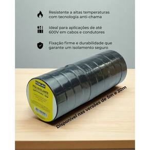 AFita Isolante Preta Anti-chama Pack 20m 009-0003 Kokay é a solução ideal para quem busca segurança e confiabilidade em instalações elétricas. Fabricada pela Kokay, referência no mercado, esta fita isolante oferece alta performance e durabilidade, garantindo a proteção de seus equipamentos e a segurança do seu lar ou empresa. Sua formulação especial anti-chama proporciona uma camada extra de proteção, minimizando riscos de acidentes e propagação de incêndios.