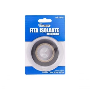 Descricao A Fita isolante anti chamas da Western e indispensavel, tem a qualidade necessaria para o nas instalacoes eletricas, permitindo que tenha diversas utilidades! - Aplicacao: Isolacao de fios e cabos eletricos em geral. - Instrucoes: Aplique a fita isolante sobre a conexao, tracionando ligeiramente em meia sobreposicao e em no minimo duas camadas. Durante a aplicacao, para obter o maximo de aderencia e conformabilidade, mantenha a superficie da fita o mais regular o possivel. - Cuidados: Armazene a fita em um seco, arejado e ao abrigo de luz solar direta. O produto deve ser mantido nas partes medianas das prateleiras e em ambiente protegido, na embalagem . A temperatura de estocagem nao deve exceder 30C por longos periodos. Manter fora do alcance das criancas. *Imagens meramente ilustrativas. Especificacao Tecnica - Dimensoes da Peca: Rolo: 5,5 x 5,5 x 2cm - Dimensoes da Embalagem: 8 x 2 x 12cm - Quantidade Inner: 60 Pecas - Dimensoes Inner: 26 x 19,5 x 23cm - Quantidade Master: 120 Pecas - Dimensoes Master: 41 x 29,5 x 25cm - Material: Filme de PVC - Cor: Preto - Tipo de Embalagem: Blister - Marca: Western - Espessura: 0,13mm - Contem: 1 Rolo: 19mm x 10m