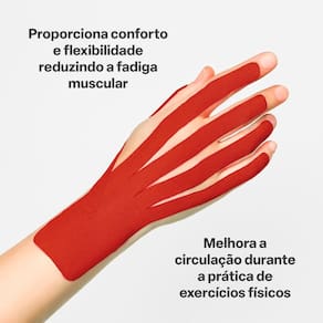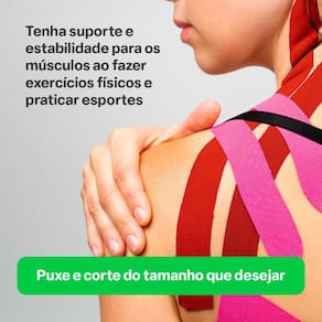 Cor: Vermelho Resistente a Agua: Sim Peso do produto: 105.000g Largura do produto: 5.0cm Altura do produto: 0.1cm Comprimento do produto: 7.2cm Conteudo da Embalagem: 1 Rolo de fita kinesio. Composicao do Material: 93 algodao e 7 elastano