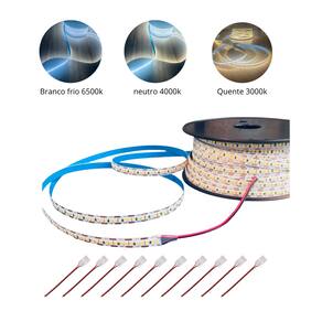 Características Técnicas: Potência Total: 900w Potência por metro: 18w Fluxo luminoso: 97500Lm Cor da luz: 3000K (branco quente), 6500K (branco frio) e 4000k (branco neutro) Tensão: 12V Densidade: 240 LEDs por metro IRC: 80 Proteção: IP20