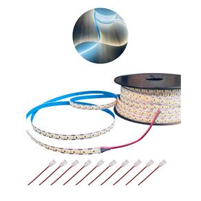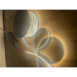 O rolo de 50 metros proporciona versatilidade para grandes instalações, permitindo cortes e adaptações conforme a necessidade. Além disso, conta com fita dupla face para fácil aplicação e proteção IP20.