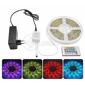 Fita Led 5M Rgb 16 Cores 5050 300 Leds + Fonte + Controle