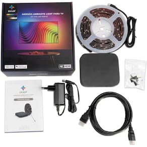 Acompanha na embalagem: @1 Controlador de fita LED @1 Fita LED @1 Fonte @1 Cabo HDMI @6 Clipes 1 Manual