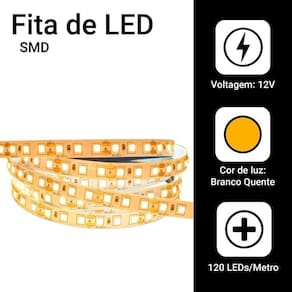 Especificações técnicas: - Alimentação: Fonte 12v 5A (Fonte inclusa) - Tensão: 12v - Índice de proteção: IP20 - Lúmens: 160/MT ou 800/5MT - Cor: Branca Quente - Modelo do LED: 2835 - Medida para Corte: 2,5 cm - Ângulo de Iluminação: 90° - Resistência a Água: Sim - Comprimento: 5 m - Espessura: 6 mm - Largura: 12 mm - Material: Silicone - Alimentação: Fonte 12v 5A