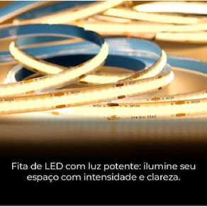 Fita LED COB 252 led por metro direta 110 volts sem fonte Fita led de alta potência não aparece pontos de led, com ela você pode iluminar e decorar o seu ambiente da maneira que desejar. Possui fácil instalação não requer fonte alimentação basta conectar na energia elétrica possui dupla face no verso Aplicação: iluminação de espaços, instalação em painel ripado, sanca aberta, sanca invertida, rasgo de luz e perfil led embutir Especificações: Potência: 10w por metro Fluxo luminoso: 1400 lumens por metro Cores de luz: 3000k branco quente, 6500k branco frio e 4000k branco neutro Tensão: 110 volts quantidade de led: 240 leds por metro ângulo de visão: 120 ° temperatura de trabalho:-20 ° a 60 °C Dimensões: Comprimento: 10 metros (não emendar acima de 20 metros) Largura: 7mm Corte a cada 6,5 cm Garantia: 3 meses Itens inclusos: fita led