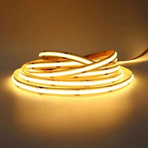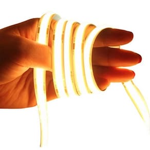 A versão COB (Chip on Board) de fitas LED identifica produtos onde o dispositivo LED é contínuo, isso é, ao invés de vários pontos de iluminação como em fitas comum, ele apresenta um dispositivo LED continuo atraves de todo o comprimento, permitindo uma maior qualidade de iluminaçao.