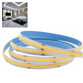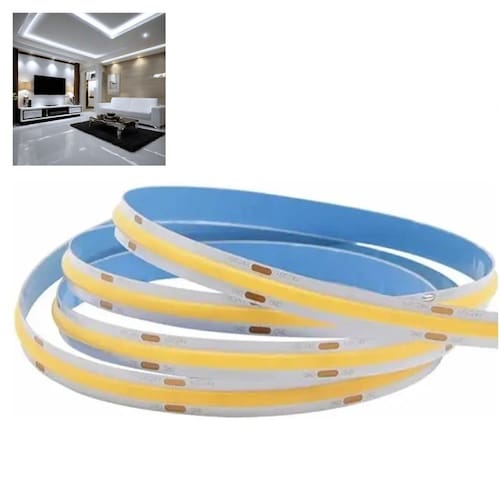 A versão COB (Chip on Board) de fitas LED identifica produtos onde o dispositivo LED é contínuo, isso é, ao invés de vários pontos de iluminação como em fitas comum, ele apresenta um dispositivo LED continuo atraves de todo o comprimento, permitindo uma maior qualidade de iluminaçao.