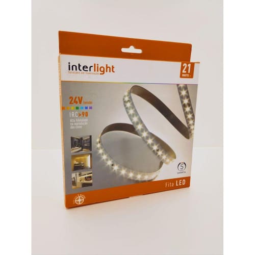 Fita Led Flexivel 21W/m 24V IRC90 IP20 5MT 2700k (Branco Quente) - Fita Led Flexivel 21W/m 24V IRC90 IP20 5MT