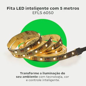 Transforme qualquer ambiente com a Fita LED Inteligente EFLS 6050. Com 5 metros de comprimento e tecnologia RGB + CCT, você pode escolher entre 16 milhões de cores ou ajustar a temperatura do branco de 3000K a 6500K, criando desde um espaço aconchegante até um ambiente moderno e iluminado para produtividade. O controle é simples e prático pelo aplicativo Mibo Smart, por automações ou até mesmo por comandos de voz com Alexa e Google Assistente. Além disso, permite ajustar intensidade, cores e cenários personalizados de forma rápida. Construída com dupla camada de cobre e materiais de alta qualidade, a EFLS 6050 oferece maior durabilidade, resistência e evita o amarelamento ao longo do tempo. A instalação é fácil e segura graças à cola de alta fixação, que garante aderência firme em superfícies lisas. Com fluxo luminoso de 900 lúmens, baixo consumo de energia e vida útil de até 15.000 horas, a Fita LED Inteligente é a escolha perfeita para quem busca estilo, praticidade e tecnologia em iluminação.
