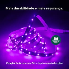 • Controle remoto pelo aplicativo no celular • Personalização com 16 milhões de cores e modos de iluminação dinâmicos • Ajuste de intensidade e temperatura de cor • Integração com outros dispositivos inteligentes da casa • Compatível com Amazon Alexa e Google Assistente para comandos por voz • Conexão direta via Wi-Fi, dispensando hub de automação • Instalação prática com adesivo autocolante de alta fixação • Flexibilidade para aplicação em diferentes ambientes e superfícies • Comprimento de 3 metros que pode ser ajustado conforme necessidade • Economia de energia com tecnologia LED de baixo consumo • Longa vida útil e material resistente