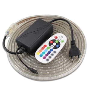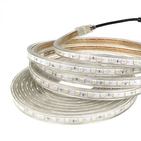 Fita Led RGB com acionamento mudança de cor via controle remoto, elimina a necessidade de emendas para comprimentos maiores do que 5 metros, emborrachada, transparente e Duravel pode dar forma como curvas e dobrada em ângulos, possui led de alto brilho e baixa temperatura de funcionamento.