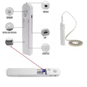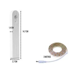Fita de Led SMD 2835 Adesiva Flexível 3m Com Sensor De Presença Com 3 Modos IP65 Funciona A Pilhas Ou Com Fonte De 5V