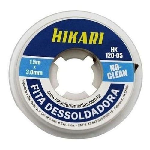 Essa fita dessoldadora Hikari é um item crucial para quem trabalha com eletrônica, permitindo a remoção do excesso de solda de forma fácil e eficiente. Com comprimento de 1,50m, ela oferece praticidade na hora de utilizar.
