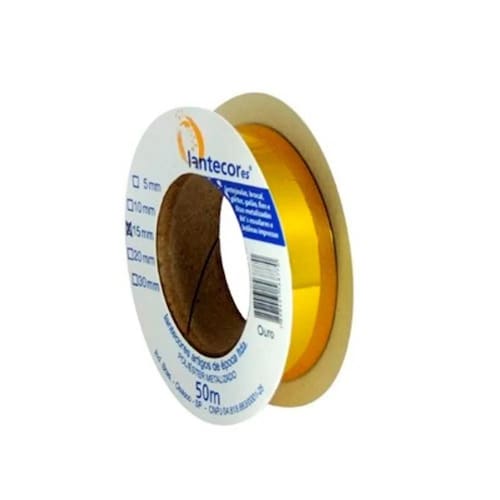 Fita Metálica 15Mmx50Mts. Ouro Lantecor Fita metálica em poliéster - largura de 15mm e rolos com 50 metros : 12 meses Material de fabricação: poliéster metalizado Peso: 0.023 kg Cor: ouro Fita metaloide metalizada na cor dourada, material utilizado em artesanato, artigos de festas e acabamentos em geral na cor dourada. Marca: Não Informado Ean: 7898461568770