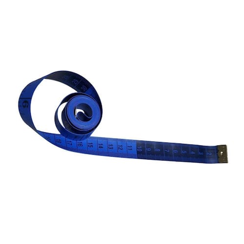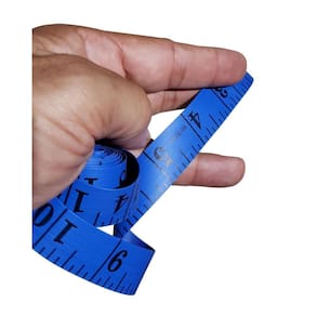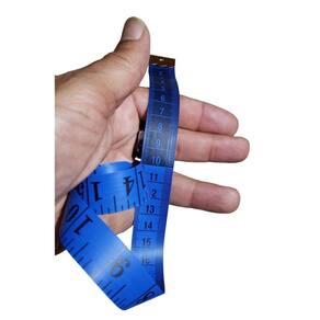 Fita métrica corporal em PVC. Comprimento 1,5 metro, largura 1, 9 cm. Medidas em centímetros com graduação em milímetros e polegadas com graduação em 1/8. Somente na cor azul.