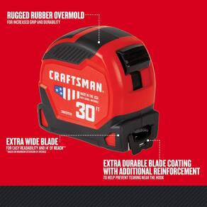 CRAFTSMAN Fita métrica, 9 m (CMHT37570S) - 4,25 metros de alcance*: a fita métrica retrátil permite medições mais fáceis ao trabalhar sozinho - Feito nos EUA com materiais globais na Nova Grã-Bretanha, Connecticut - MEDIDAS RÁPIDAS E FÁCEIS: Lâmina extra-larga com números grandes e fáceis de ler - Durabilidade: melhor durabilidade da lâmina e proteção do gancho para prolongar a vida útil do produto**