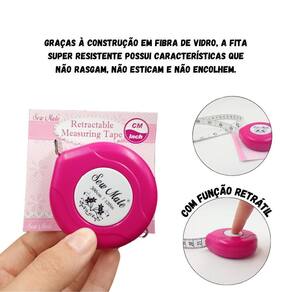 Marca: Sew Mate Modelo: Fita Métrica Pink Referência: rs300a p Composição: ABS, Nylon, Fibra de vidro Circunferência de 6 cm