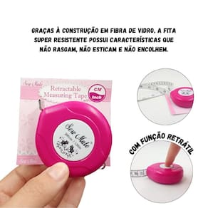 Fita Métrica Retrátil Pink 3 Metrôs - Sew Mate A fita Métrica Pink de 3 metros é uma ferramenta indispensável para todo artesão Graças à construção em fibra de vidro, a fita super resistente possui características que não rasgam, não esticam e não encolhem.