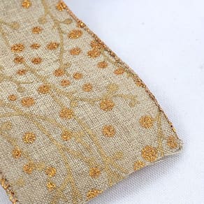 A Fita Natalina Bolinha 6,3Cmx2,7M Estampa Natal Decorativa é feita de tecido aramado, nas cores bege e cobre. Para limpeza, basta utilizar uma flanela seca ou um espanador, evitando o uso de produtos químicos ou abrasivos. Esta fita não deve ser lavada.