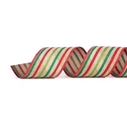 Fita Decorativa Juta Cru Listras Vermelho/Verde 6,3cm C/9,14m 1014306