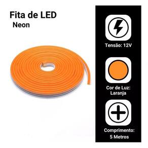 Fita Neon Led 5m 12v Corte 2,5cm Flexivel Alto Brilho Luz - Cor: Laranja