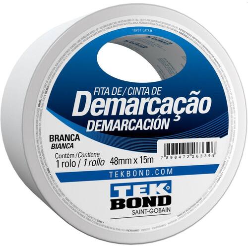 Fita Para Demarcação De Solo Pvc Branco 48Mmx15M Fitas para demarcação e sinalização de riscos por meio de cores. Oferece fixação fácil e grande resistência depois de aplicadas. A cor branca é empregada em faixas para demarcar passarelas, corredores, locais por onde circulam pessoas. Presente no mercado desde 2002, a Tekbond é uma empresa especializada na produção e na importação de produtos adesivos, adesivos instantâneos, selantes, travas químicas, silicones, entre outros. A marca oferece produtos que servem para uso doméstico e industrial, atendendo aos mais diversos segmentos do mercado, como o da construção civil, industrial, artesanato, moveleiro, automotivo e de consumo. Ean: 7898472263398