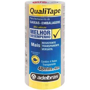 - Fita para embalagem Qualitape. - Fita para empacotamento, lacração de pacotes, fechamento de caixas de papelão, emendas e reforços, junções, proteção, marcação e diferenciação, uso geral na construção civil. - Ref: 0811000018. - Transparente. - Adelbras.