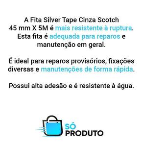Descrição A fita silver tape cinza scotch 45 mm x 5m é mais resistente à ruptura. Esta fita é adequada para reparos e manutenção em geral. Ela vai te ajudar a consertar as coisas rapidinho e deixar tudo como novo em pouco tempo é ideal para reparos provisórios, fixações diversas e manutenções de forma rápida. Possui alta adesão e é resistente à água.