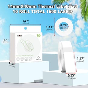 - Fita térmica para etiquetar (1600 unidades) - Fita Aqua Label Maker 0,55 “X 1,57" (14 mm x 40 mm) - 160 fitas em cada rolo
