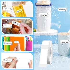 - Impressão de papel de etiqueta sem tinta ou fita! Papel de etiquetagem térmica compatível com a impressora de etiquetas D30 ou outra impressora de etiquetas, tem a função de impressão nítida, impermeável, à prova de óleo, resistente a rasgos e resistente a arranhões. O papel de etiqueta tem forte adesividade.