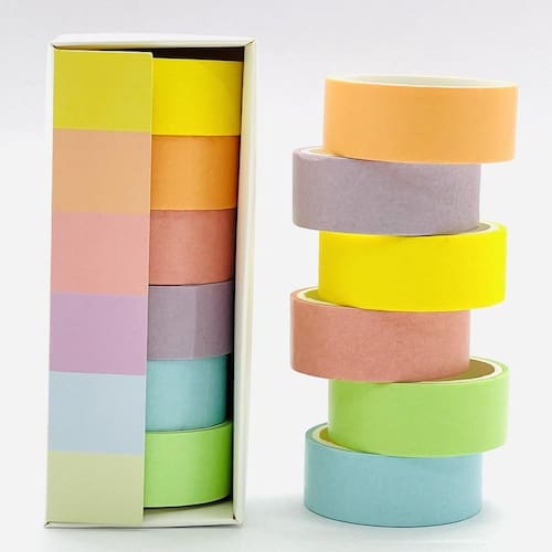 Fita adesiva tipo washi tape. Cores: pastel 6 cores diferentes e ideal para scrapbook, decoração, planner, artesanato, etc. Tamanho: 1,5 cm x 3 metros cada fita valor do kit com 6 fitas