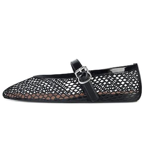MICIFA Sapatilhas femininas de malha arrastão bailarina rasteiras com fivela Mary Jane Sapatilhas casuais para uso diário, Preto-fba - Material: combinação de malha e couro envernizado, palmilha e forro de couro elástico, sola antiderrapante de borracha. - Design requintado Mary Jane: a característica distintiva do sapato Mary Jane são seus acabamentos de couro envernizado brilhante e alça de fecho de fivela, que adicionam um toque clássico e moderno às sapatilhas Mary Jane. O lindo design de bico redondo molda perfeitamente seus pés e mostra a beleza dos seus pés. - Amortecimento macio: estas sapatilhas de balé apresentam um forro macio que é confortável e resistente à abrasão, mantendo seus pés confortáveis durante todo o dia. A sola antiderrapante garante uma aderência estável em qualquer superfície, o que o torna uma ótima escolha para mulheres que buscam conforto e segurança em suas roupas diárias. - Ocasiões adequadas: adequado para festivais de música country, dança de linha, festas, festivais, concertos, viagens, feriados, casamentos, rodeios ou compras, ruas, elegante e confortável de usar o dia todo. - Serviço pós-venda: se você tiver algum problema com nossas sapatilhas de balé a qualquer momento, forneceremos um serviço pós-venda satisfatório em 24 horas!
