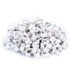 ** KIT EXCLUSIVO COM 1.000 UNIDADES **Fixa Cabo Coaxial 6mm + Prego 2,5x25 com 1000 Peças SforDescrição:- É amplamente utilizada para fixação de fios coaxiais, fixados em alvenaria ou madeira.- A fixação é realizada através do golpeamento do prego de aço com a utilização de um martelo.- Os fixa-cabos são montados com prego de aço 2,5x25 mm, os quais são submetidos a um tratamento térmico para garantir a dureza apropriada e posteriormente são galvanizados para conferir as características visuais e de anti-corrosão.- Produzido em polietileno de alta densidade.Diâmetro A: 8,0 mm. Diâmetro A1: 6,60 mm. Diâmetro B: 6,0 mm.Conteúdo: 10 Pacotes com 100 unidadesMarca: SforplasticCódigo: KIT-73184-10