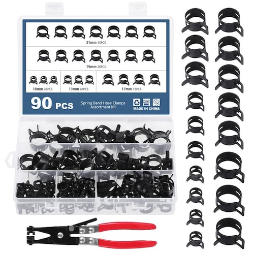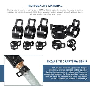 Funcionalidades Ótimo conjunto Este conjunto de grampos flexíveis é perfeito para todos os projetos e reparos que você fará em casa. Use todas as mangueiras novas ao instalar um motor em um de seus carros e, em seguida, instale linhas de combustível e vácuo para sua bicicleta de sujeira, soprador de neve. Alta qualidade Design de precisão de anel interno de 360°, altamente selado. Superfície polida suave, evita efetivamente danos ao tubo. Após a desidrogenação eficaz, não precisa se preocupar com ruptura e outros problemas após o uso prolongado. Uma variedade de opções de tamanho para atender a quase todas as suas necessidades Estes grampos de mangueira com mola estão disponíveis em vários tamanhos diferentes, que é a principal razão pela qual você gosta deste conjunto, porque você não sabe o tamanho que precisa ao substituir. Alicate de braçadeira de mangueira de junta giratória Estes alicates são longos o suficiente para permitir que você trabalhe em espaços apertados. Nossa braçadeira de mangueira pode entrar nesses espaços apertados e fazer o trabalho facilmente! Características do alicate de fixação Mandíbulas de bloqueio ajustáveis com segurança Aderência antiderrapante Feito de aço de alto carbono, revestido com revestimento protetor, anticorrosão e ferrugem Junta rotativa, flexível em uso Especificação Material: aço de mola (65MN) + aço carbono Cor: Preto Tamanho: 10 mm; 13 mm; 17 mm; 19 mm; 21 mm (Nota: os grampos de mola não têm força de aperto no estado natural. Precisa ser colocado no tamanho do anel interno maior do que um tubo redondo para produzir força de aperto) Lista de produtos 10 mm --- 20 peças 13 mm --- 20 peças 17 mm --- 15 peças 19 mm --- 20 peças 21 mm --- 15 peças 1 alicate de braçadeira de mangueira (22 cm/8,66 polegadas) Nota calorosa 1. As cores podem ter diferenças devido à exibição diferente, por favor, entenda. 2. Considere uma diferença de 1 a 2 mm devido à medição manual, certifique-se de que isso não se importa com isso antes de comprar. - ?O kit inclui? O kit contém 5 tamanhos de vários grampos de mola, incluindo 10 mm; 13 mm; 17 mm; 19 mm; 21 mm; cada tamanho é classificado e armazenado em uma caixa de plástico, e também vem com um alicate de braçadeira de mangueira adicional. Este conjunto de grampos pode atender às necessidades diárias básicas. - ?Alta qualidade? Braçadeira de mola feita de aço de mola 65MN, processo de revestimento Dacromet, forte e durável, resistente à corrosão em ambientes úmidos, pode ser armazenado por um longo tempo, altamente selado, suave e sem rebarbas, não arranhará o tubo quando utilizado. - ?Funcionalidade? Design de precisão do anel interno de 360 graus, evita efetivamente danos ao tubo. O grampo de mola pode garantir uma conexão confiável e à prova de vazamento entre a mangueira e o encaixe para evitar vazamento de fluido, ideal para fixar a conexão da mangueira ao encaixe. - ?Fácil de usar? Quando você precisa apertar, você só precisa pressionar as orelhas com força para aumentar o anel interno antes de colocar no tubo redondo e, em seguida, soltar, você pode fixar, mais conveniente de usar com alicates, pode ser utilizado repetidamente. - ?Ampla aplicação?Para fixação e vedação de juntas como mangueiras de combustível/vácuo/gás/ar/água/silicone, ideal para conexões de tubos em garagens, barcos, motocicletas, gramados e motores de carros.