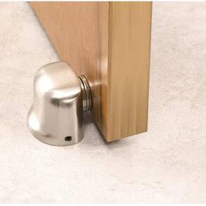 Indicado para travar a porta aberta Possui corpo em alumínio fundido e batente em aço carbono, com sistema de fixação magnética e amortecimento com mola