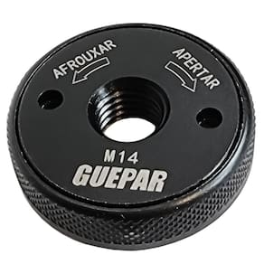 Flange Chave de Aperto Rápido M14 para Esmerilhadeira até 230mm Guepar - Marca: Guepar - Referência: 861-47989 - Rosca de encaixe: M14 - Indicado para esmerilhadeiras de até 2.400W - Utilizada na fixação rápida e afrouxamento de discos de 4.1/2 e 7 - - Alta qualidade e acabamento - Tem a função de travamento automático, economizando tempo ao apertar - Pode ser apertado ou solto sem uma chave. - : 90 dias Marca: Não Informado Ean: 7898615547989
