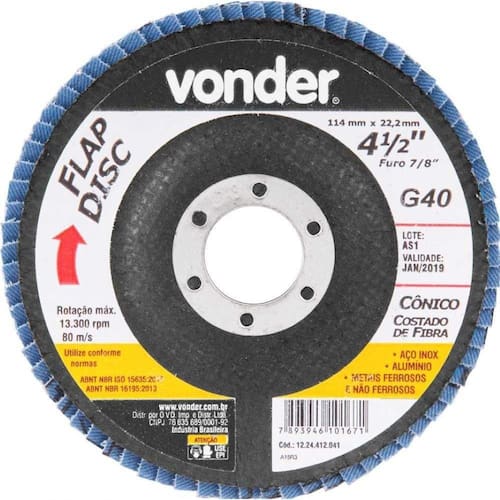 Diâmetro externo do disco de desbaste/ acabamento flap-disc: