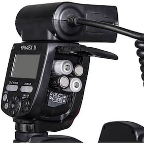Flash circular macro yongnuo yn-14ex ii A yongnuo montou este kit de flash circular macro yn-14ex ii ttl para canon para fotógrafos que precisam de uma solução leve para iluminação suave, detalhada e envolvente para trabalhos em close. O kit inclui a unidade de controle para montagem em sapata compatível com e-ttl / e-ttl ii e um flash de anel com anéis adaptadores de lente de 52, 62, 67 e 72 mm. São fornecidos quatro filtros ct de encaixe para ajustar a saída de 5600k do flash, enquanto uma bolsa de transporte está incluída para armazenamento e transporte. Conteúdo da embalagem:1x flash macro ring lite yn-14ex ii4x anéis adaptadores 52mm, 62mm, 67mm e 72mm4x filtros1x bolsa de proteção Obs: imagens meramente ilustrativas. Câmera e acessórios fotográficos não acompanham o produto.