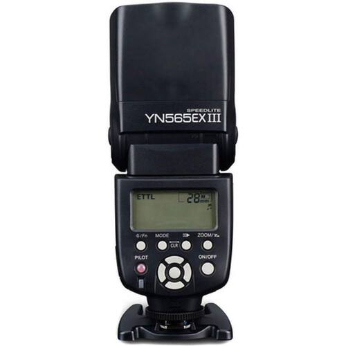 O 565ex III Wireless Flash da Yongnuo é uma unidade de flash montada em sapata projetada para sistemas de câmeras Canon com funcionalidade TTL. Ele possui um número guia de 190' a 100 ISO na posição de 105 mm na cabeça de foco, proporcionando ampla cobertura dentro de uma faixa de zoom de 24 a 105 mm. O 565EX III também tem um tempo de reciclagem de dois a quatro segundos na potência máxima.