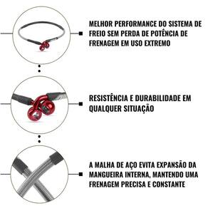 Fabricado em malha de aço inox trançada de alta resistência com conectores em epóxi, mantendo a estabilidade do sistema de freio mesmo com uso intenso.