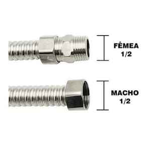 Tubo metálico flexível para condução de água quente ou fria na instalação de aquecedores e metais sanitários. Na extremidade da fêmea giratória porca giratória , é fornecido anel de vedação em borracha nitrílica. Roscas conforme nbr 8133.