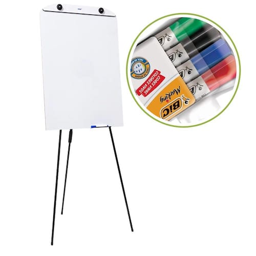 Sua tela é feita de chapa de fibra e madeira MDF com acabamento em pintura 100% UV, ideal para uso de marcador de quadro branco e possui um porta bloco para bloco de papel de Flip Chart e porta caneta/apagador injetado em plástico.